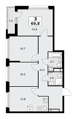 Купить 3к квартиру 69 м² в ЖК Родные кварталы