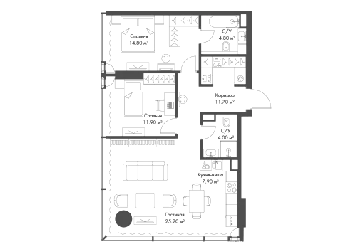Купить 2к квартиру 81 м² в апарт-комплексе SLAVA (Слава)