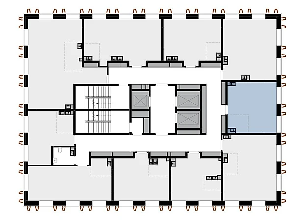 Появится также креативное выставочное пространство для проведения презентаций продуктов, клиентских и корпоративных мероприятий. На подземной парковке — 228 комфортных машино-места, в том числе 10 гостевых. Есть зарядные станции для электромобилей. Предусмотрена зона для высадки гостей и такси.