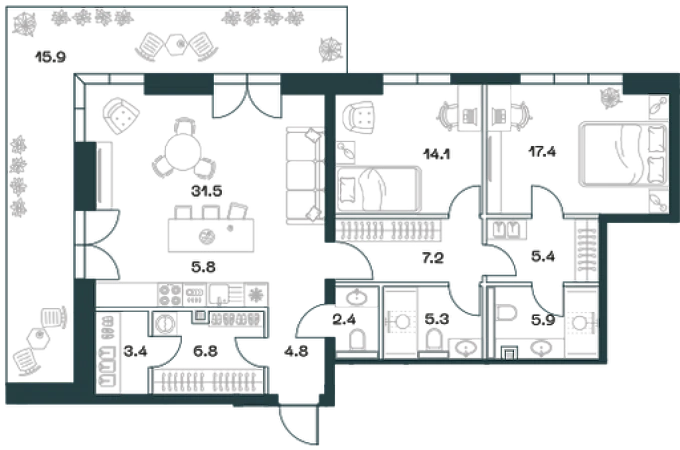 Купить 3к квартиру 125 м² в квартале SHIFT