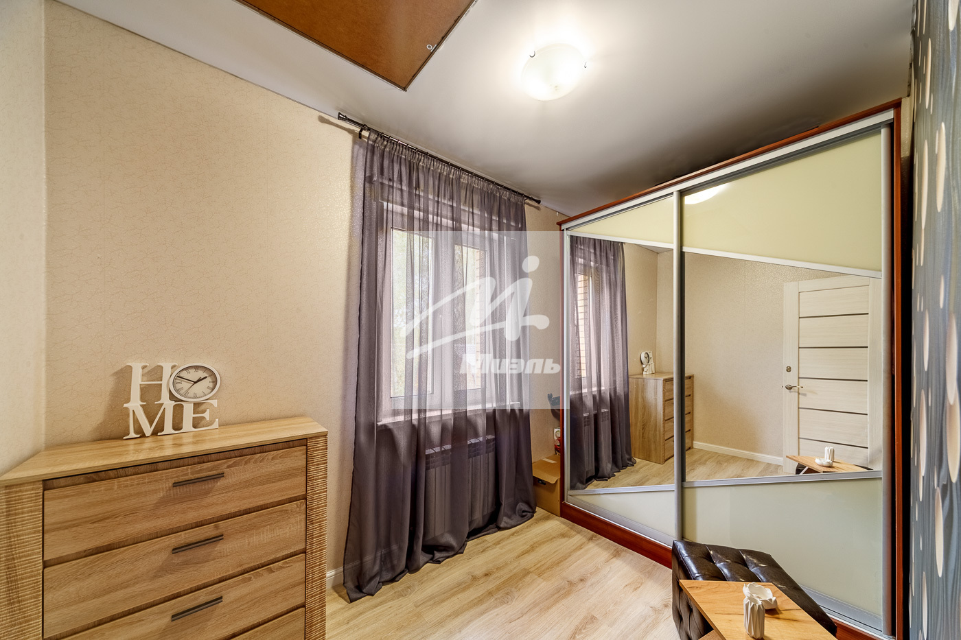 Первый этаж- кухня, две комнаты. Второй этаж- три комнаты, балкон. Вся мебель остаётся.