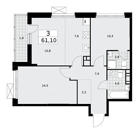Продаётся 3-комнатная квартира, площадью 61,1 кв. м на 14-м этаже дома бизнес-класса в ЖК "Скандинавия". Квартира с функциональной планировкой: большие окна, высота потолка 3,1 м, балкон, гардероб, мастер-спальня.