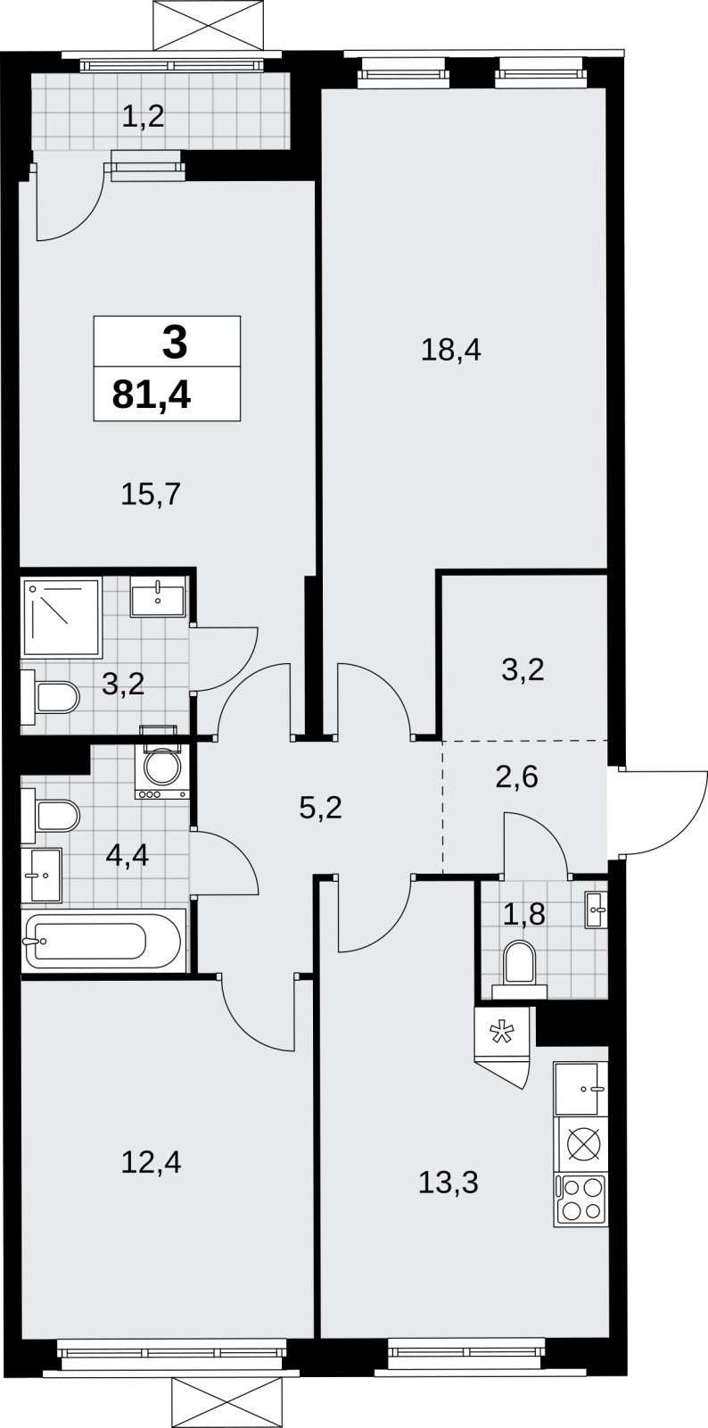 Продаётся 3-комнатная квартира, площадью 61,1 кв. м на 12-м этаже дома бизнес-класса в ЖК "Скандинавия". Квартира с функциональной планировкой: большие окна, высота потолка 3,1 м, балкон, гардероб, мастер-спальня.