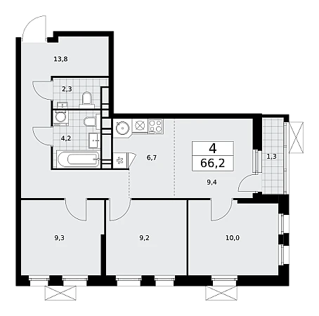 Купить 4к квартиру 66 м² в ЖК Скандинавия