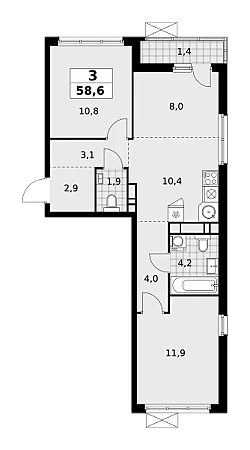 Купить 3к квартиру 58 м² в ЖК Скандинавия