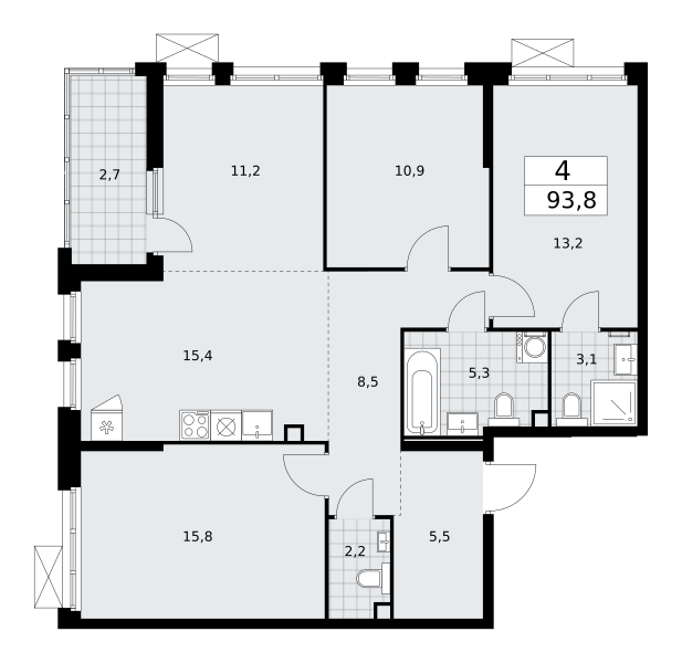 Купить 4к квартиру 93 м² в ЖК Скандинавия