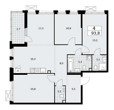 Продаётся 4-комнатная квартира, площадью 93,8 кв. м на 2-м этаже дома бизнес-класса в ЖК "Скандинавия". Квартира с функциональной планировкой: большие окна, высота потолка 3,1 м, балкон, гардероб, мастер-спальня.