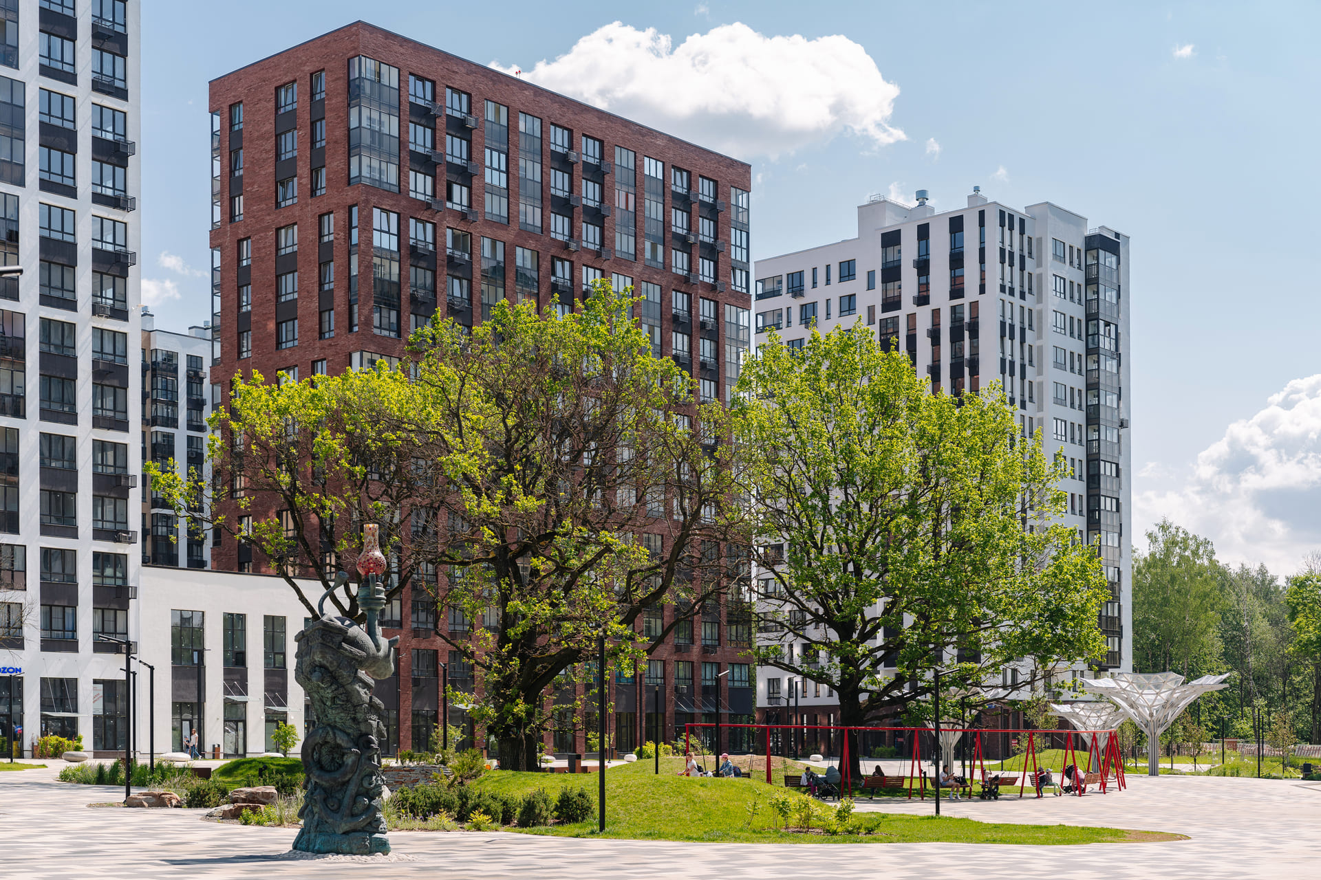 Собственная инфраструктура района включает современные школы, детские сады, супермаркеты, торговые и спортивные центры, ветеринарные клиники, зоомагазины и другие объекты для комфортной жизни. Будет построена государственная поликлиника. На первых этажах домов уже открыты магазины, детские развивающие центры, кафе, салоны красоты, сервисы.