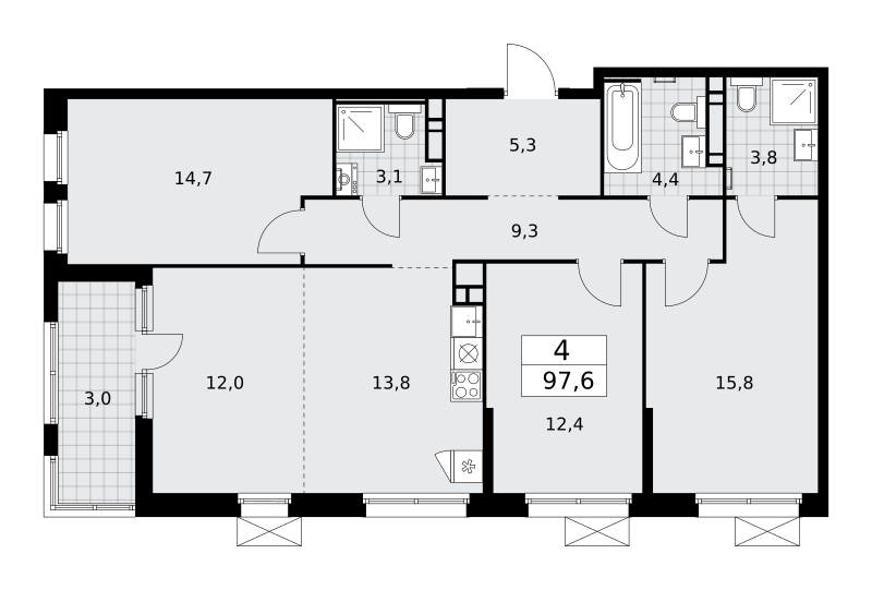 Продаётся 4-комнатная квартира, площадью 97,6 кв. м на 13-м этаже дома бизнес-класса в ЖК "Скандинавия". Квартира с функциональной планировкой: большие окна, высота потолка 3,1 м, балкон, гардероб, мастер-спальня.