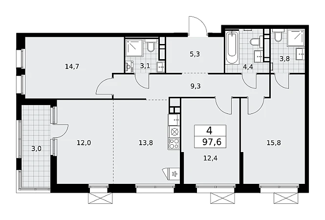 Купить 4к квартиру 97 м² в ЖК Скандинавия