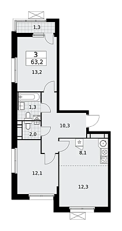 Купить 3к квартиру 63 м² в ЖК Скандинавия
