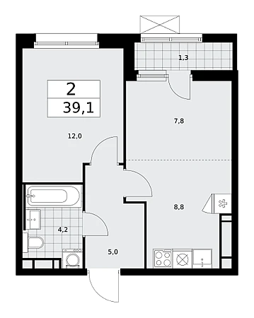 Купить 2к квартиру 39 м² в ЖК Скандинавия