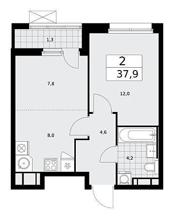 Купить 2к квартиру 37 м² в ЖК Скандинавия