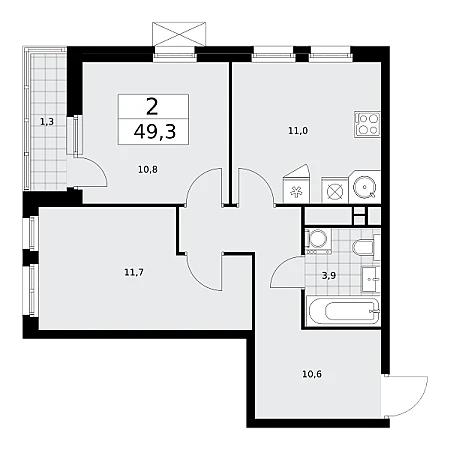 Купить 2к квартиру 49 м² в ЖК Скандинавия