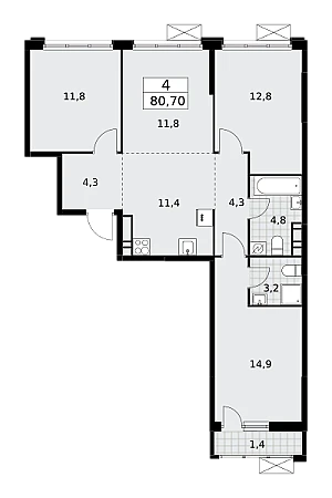 Продаётся 4-комнатная квартира, площадью 80,7 кв. м на 15-м этаже дома бизнес-класса в ЖК "Скандинавия". Квартира с функциональной планировкой: большие окна, высота потолка 3,1 м, балкон, гардероб, мастер-спальня.