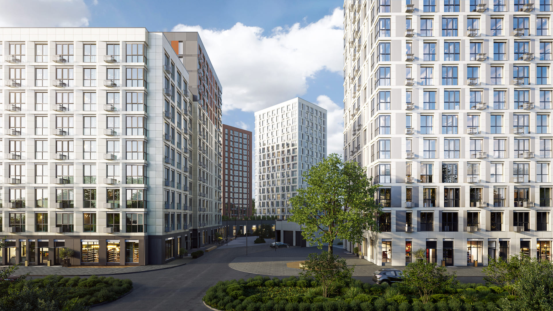 Собственная инфраструктура района включает современные школы, детские сады, супермаркеты, торговые и спортивные центры, ветеринарные клиники, зоомагазины и другие объекты для комфортной жизни. Будет построена государственная поликлиника. На первых этажах домов уже открыты магазины, детские развивающие центры, кафе, салоны красоты, сервисы.