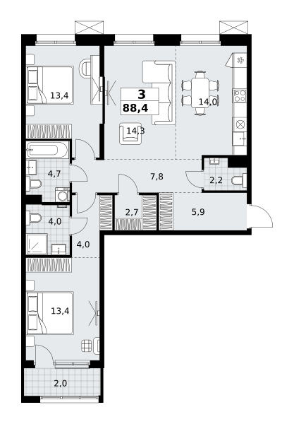 Купить 3к квартиру 93 м² в ЖК Скандинавия