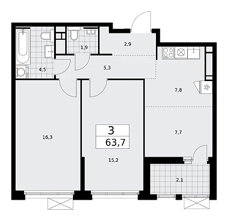 Продаётся 3-комнатная квартира, площадью 63,7 кв. м на 16-м этаже дома бизнес-класса в ЖК "Скандинавия". Квартира с функциональной планировкой: большие окна, высота потолка 3,1 м, балкон, гардероб.