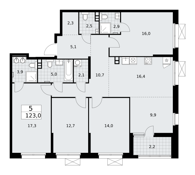Купить 5к квартиру 123 м² в ЖК Скандинавия
