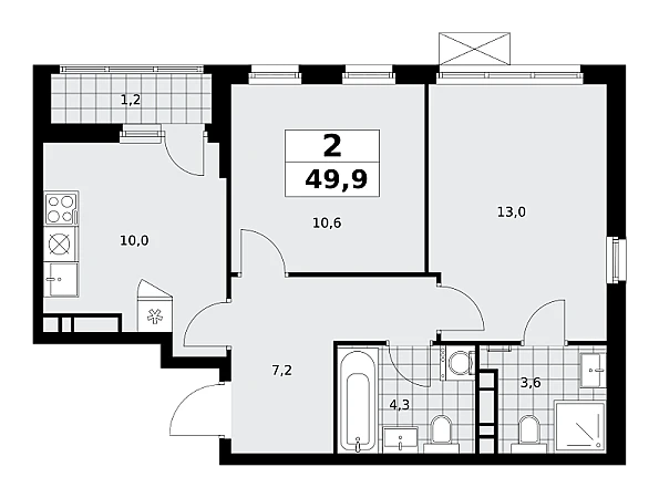 Купить 2к квартиру 49 м² в ЖК Скандинавия