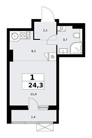 Купить 1к квартиру 24 м² в ЖК Бунинские кварталы