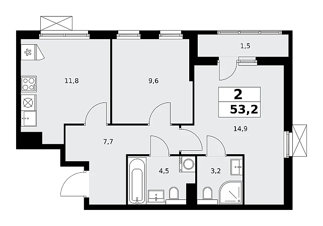 Купить 2к квартиру 53 м² в ЖК Бунинские кварталы