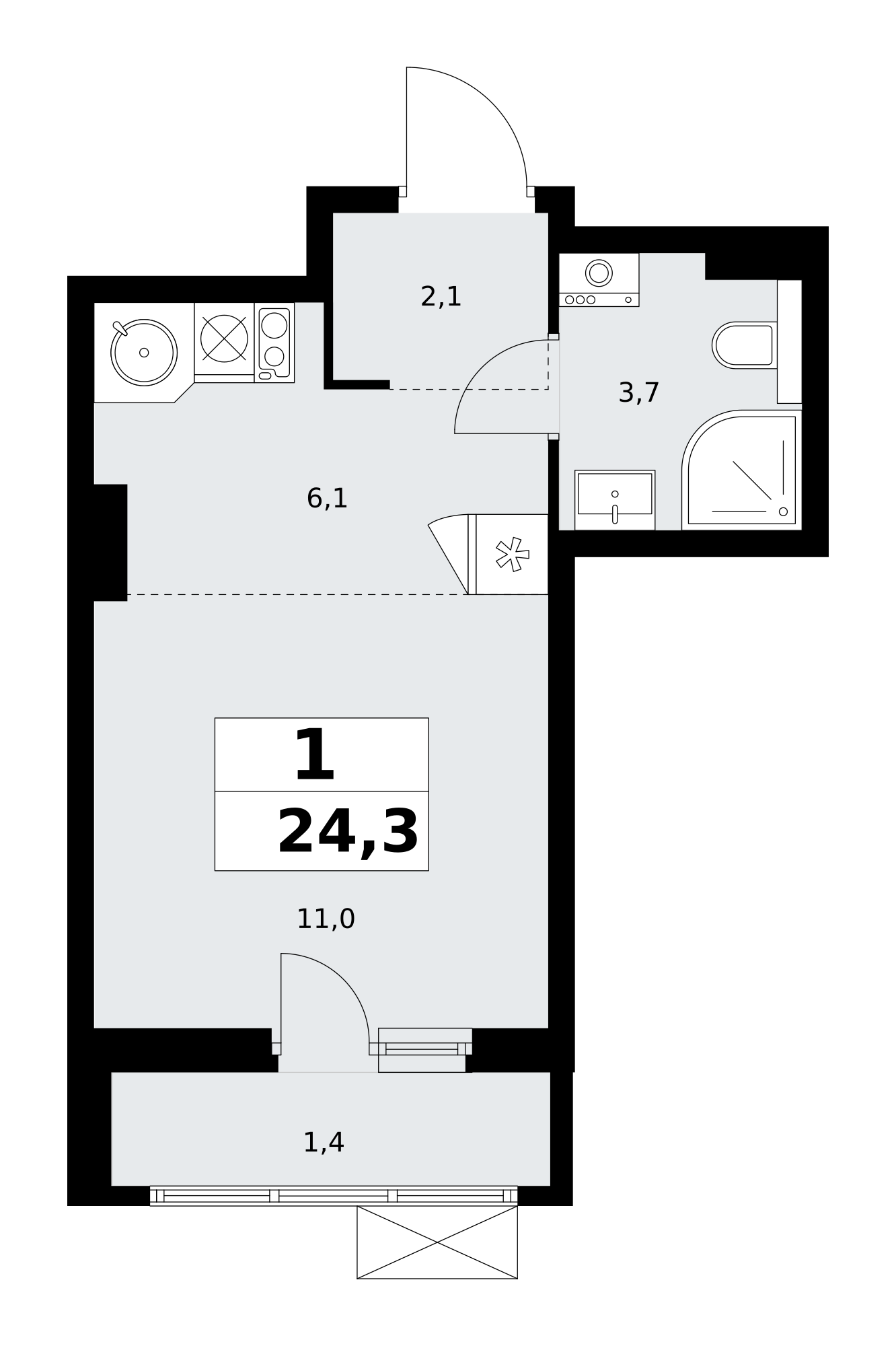 Продаётся квартира-студия, площадью 24,3 кв. м на 17-м этаже дома комфорт-класса в ЖК "Бунинские кварталы". Квартира с функциональной планировкой: большие окна, высота потолка 2,8 м, балкон.