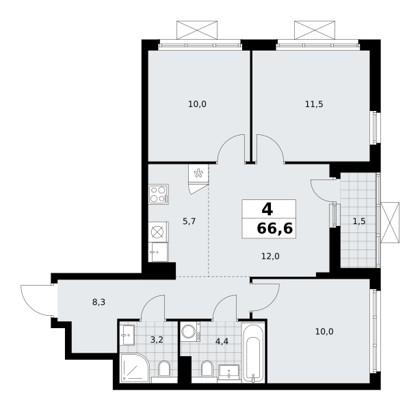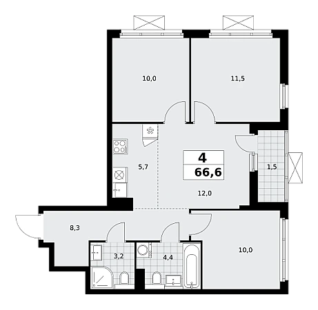 Купить 4к квартиру 66 м² в ЖК Бунинские кварталы
