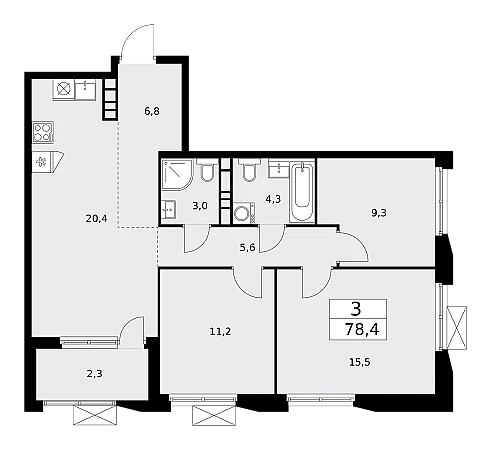 Купить 3к квартиру 78 м² в ЖК Бунинские кварталы
