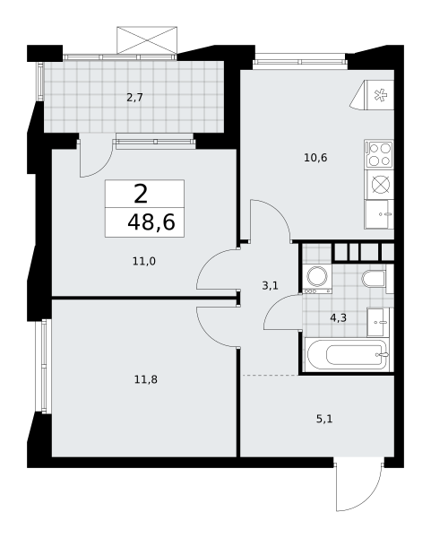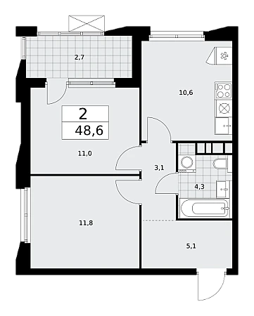 Продаётся 2-комнатная квартира, площадью 48,6 кв. м на 21-м этаже дома комфорт-класса в ЖК "Бунинские кварталы". Квартира с функциональной планировкой: большие окна, высота потолка 2,95 м, балкон.