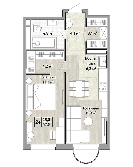 Купить 2к квартиру 48 м² в ЖК Бунинские кварталы