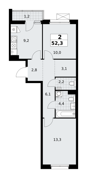 Купить 2к квартиру 61 м² в ЖК Бунинские кварталы