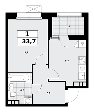 Купить 1к квартиру 33 м² в ЖК Бунинские кварталы