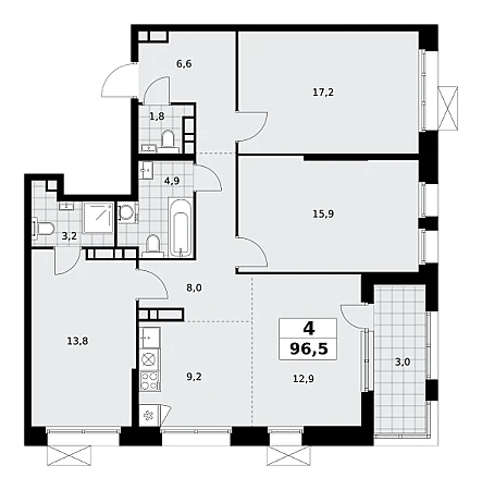 Купить 4к квартиру 96 м² в ЖК Бунинские кварталы