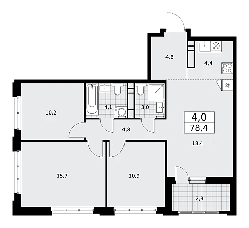 Продаётся 4-комнатная квартира, площадью 78,4 кв. м на 15-м этаже дома комфорт-класса в ЖК "Дзен-кварталы". Квартира с функциональной планировкой: большие окна, высота потолка 2,95 м, балкон.