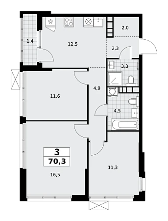 Купить 3к квартиру 70 м² в ЖК Южные сады