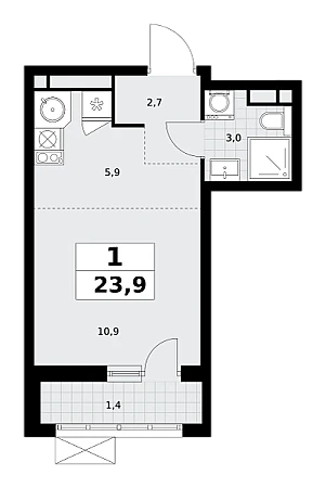Продаётся квартира-студия, площадью 23,9 кв. м на 9-м этаже дома комфорт-класса в ЖК "Родные кварталы". Квартира с функциональной планировкой: большие окна, высота потолка 2,95 м, балкон.