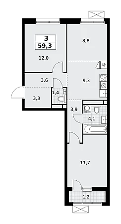 Купить 3к квартиру 59 м² в ЖК Родные кварталы
