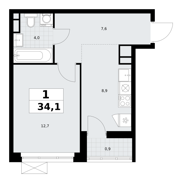 Купить 1к квартиру 34 м² в ЖК Родные кварталы