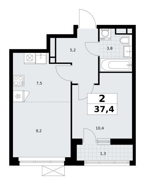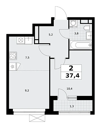 Купить 2к квартиру 37 м² в ЖК Родные кварталы