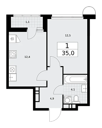 Купить 1к квартиру 35 м² в ЖК Родные кварталы