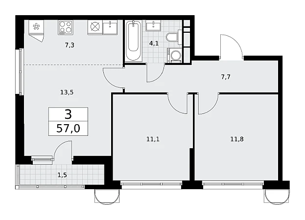 Купить 3к квартиру 57 м² в ЖК Родные кварталы