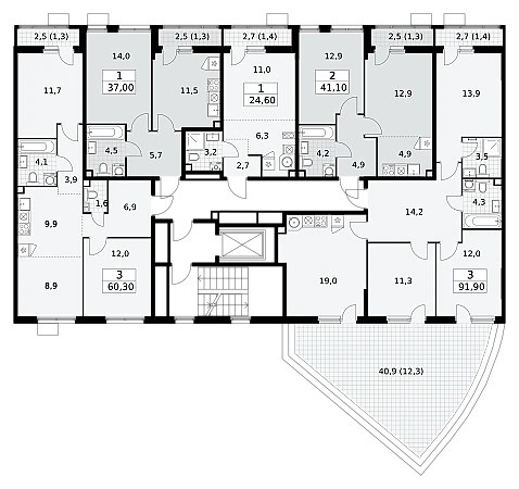Купить 3к квартиру 91 м² в ЖК Родные кварталы