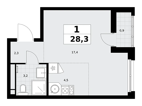 Продаётся квартира-студия, площадью 28,3 кв. м на 7-м этаже дома комфорт-класса в ЖК "Родные кварталы". Квартира с функциональной планировкой: большие окна, высота потолка 2,95 м, балкон.