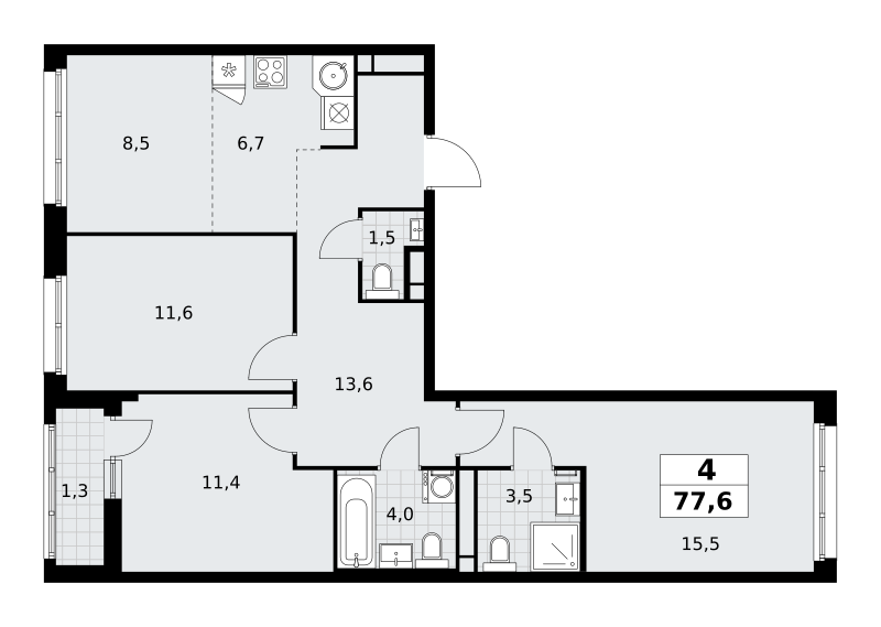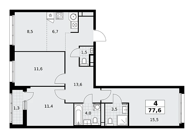 Купить 4к квартиру 77 м² в ЖК Родные кварталы