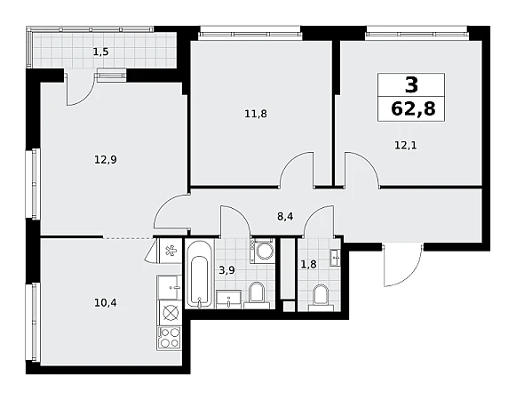 Купить 3к квартиру 62 м² в ЖК Родные кварталы