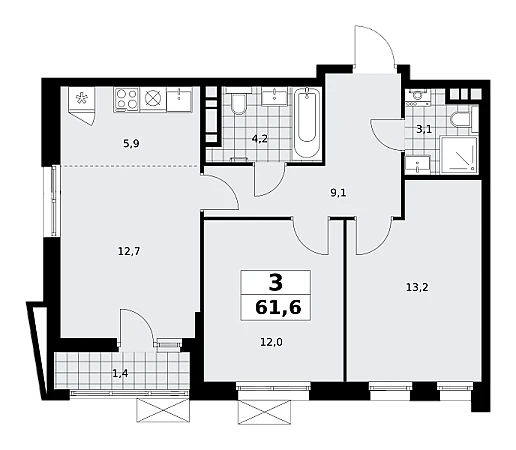 Купить 3к квартиру 61 м² в ЖК Прокшино