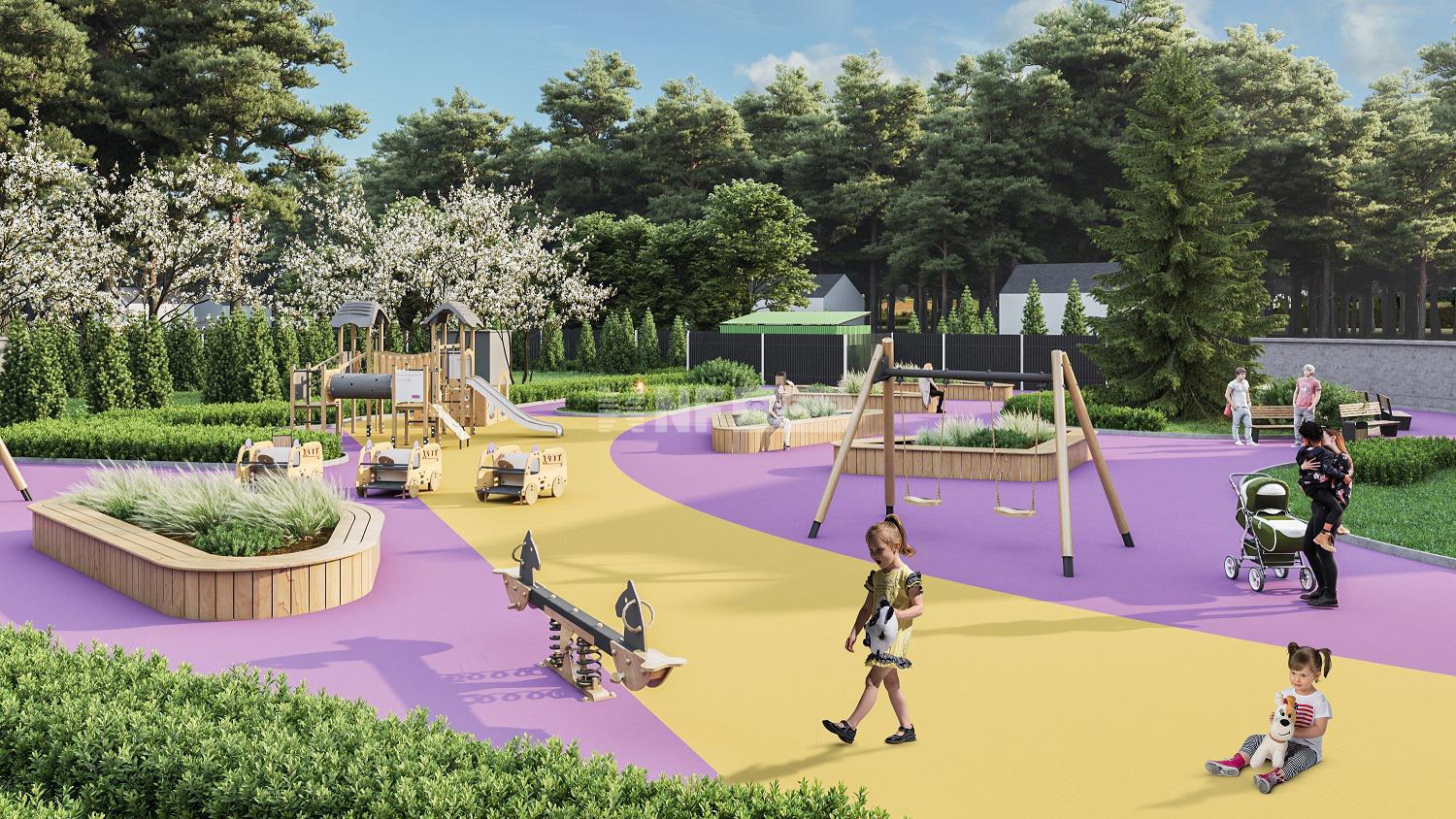 Внутри посёлка будет построена современная детская площадка, а также пешие и велодорожки. В шаговой доступности находятся прогулочные лесные зоны.