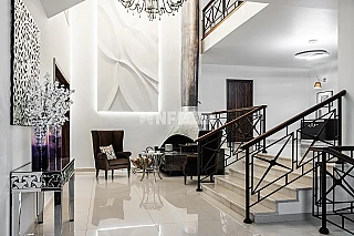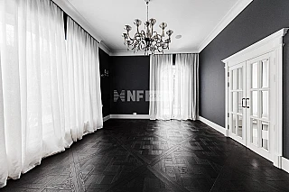 • Уникальные художественные полы с подогревом: гранит с мраморными панно на первом этаже, штучный паркет из массива дуба на втором