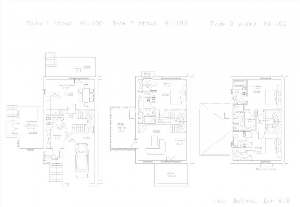 1 этаж: кухня - столовая - гостиная с выходом на террасу, кухонная кладовка (или черновая кухня) , кабинет, прихожая, котельная, гостевой санузел;